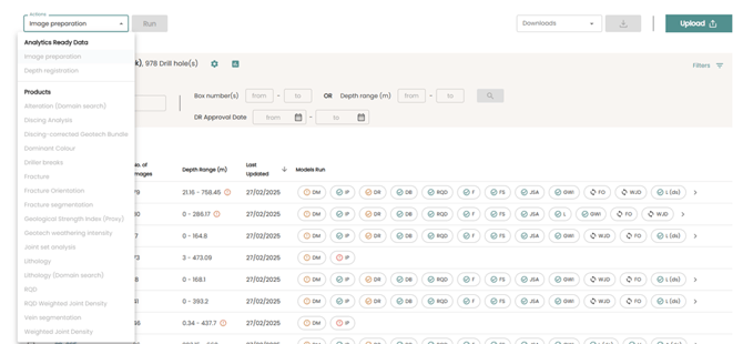 You will no longer need to contact Datarock support with a request to run these products and the results for these products can be downloaded from the platform.
